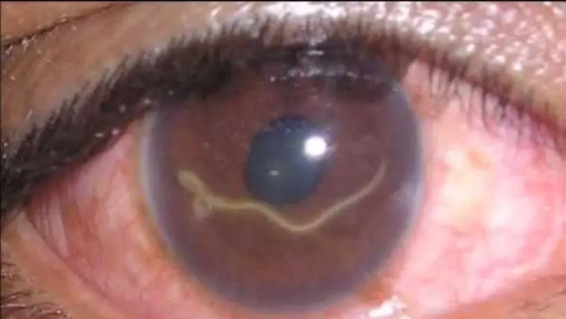عند فحص العين، تبين وجود طفيلي يتحرك داخل الجسم الزجاجي للعين، وهي المادة الهلامية بين العدسة وشبكية العين.