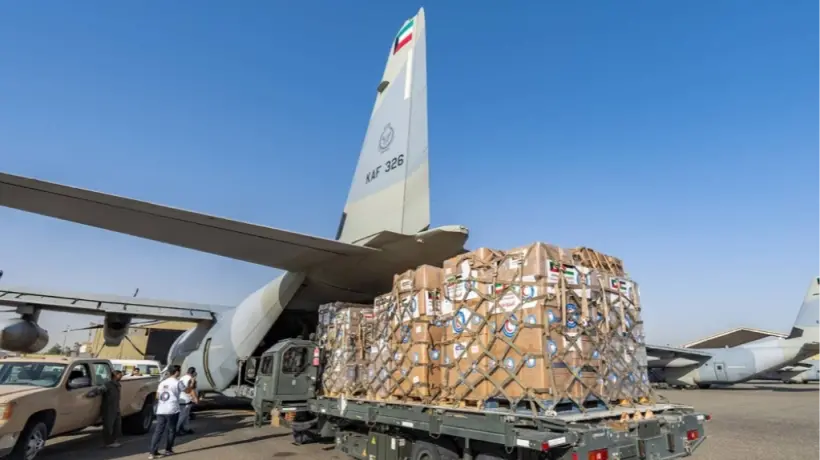 طائرة سابعة محملة بالمساعدات تغادر قاعدة عبدالله المبارك نحو الأردن لمساعدة غزة.