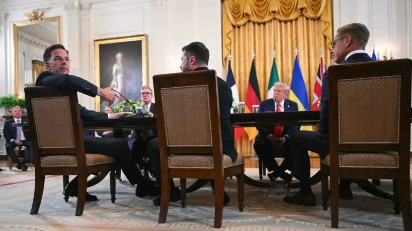 في مشهد مثير للاهتمام، ظهر الرئيس الأمريكي دونالد ترامب في المكتب البيضاوي يتحدث إلى مجموعة من القادة الأوروبيين ومنهم قادة أوكرانيا، بريطانيا، فرنسا، ألمانيا وإيطاليا، بالإضافة إلى الأمين العام لحلف الناتو ورئيسة المفوضية الأوروبية. اجتمعوا جميعاً لمناقشة نتائج القمة التي جمعته مع الرئيس الروسي فلاديمير بوتين والتي أُقيمت مؤخراً في ألاسكا.